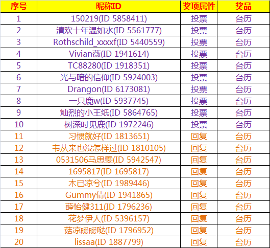 【中奖名单】有奖调查“你最喜欢哪种论坛活动?”结果公布