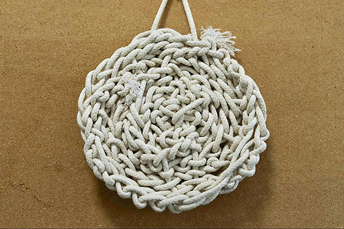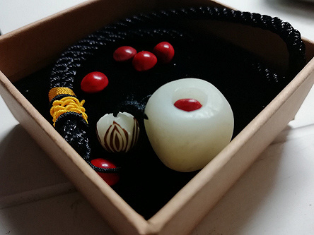 发髻结的形状像一朵云彩,古时有“华美”之意,这便是祥云的由来。祥云两旁的是两组六线金刚结,在手链末端还有两组。金刚结是连续编结,两绳回环缠绕,紧密结合,一旦打成,难以解开,故有“稳固刚硬” 之意,相传能护身辟邪。平结的纹样,最早可见于汉代一块绳纹玉佩,双向平结因结形方正平实,故象征富贵平安,平步青云。最后手链的活扣便是双向平结编制而成。