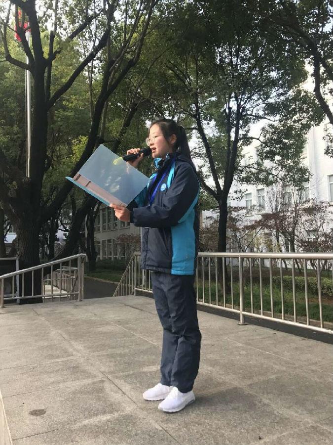 尊敬的各位老师,亲爱的同学们,大家早上好!我是17级艺术与科技中本贯通班的宋紫萱,很荣幸今天的升旗仪式由我来主持。