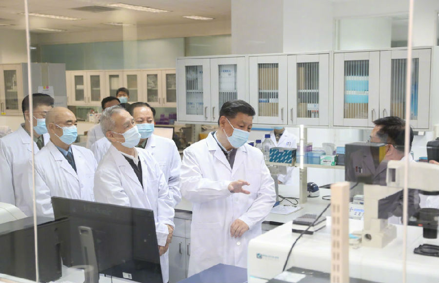 3月2日,习近平在北京考察新冠肺炎防控科研攻关工作。新华社记者 丁海涛摄