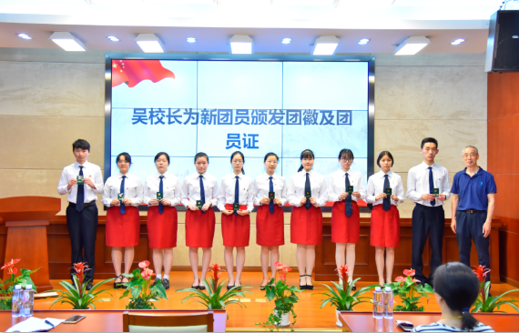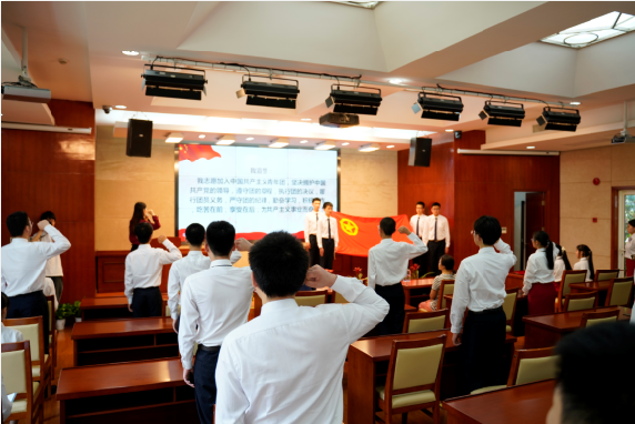 庄严的宣誓仪式有条不紊地顺利完成了,希望新老团员们能带着共青团的光辉和荣耀,以实际行动来切实加强自己的能力。