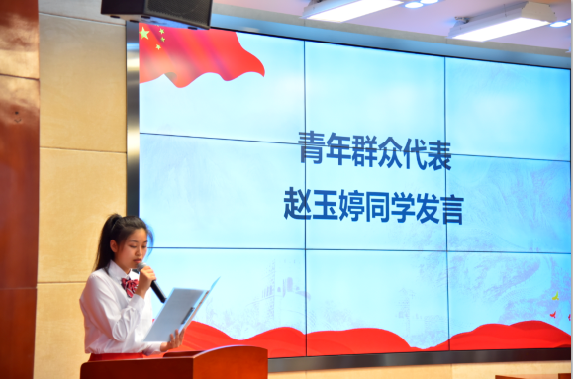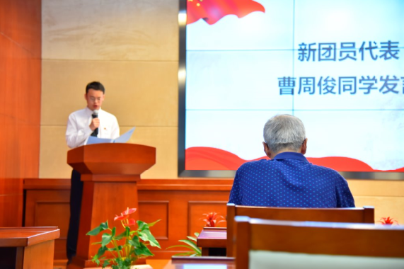 加入共青团是一种荣誉,更是一份责任,来自19级商贸班曹周俊同学代表新团员发言,他表示在进入中国共青团后,感到无比的激动,陈恳地表达了在以后的要刻苦学习,努力工作,实践自己的入团誓言。
