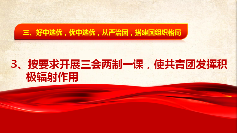 3、按要求开展三会两制一课,使共青团发挥积极辐射作用