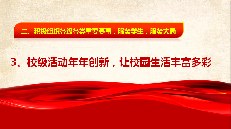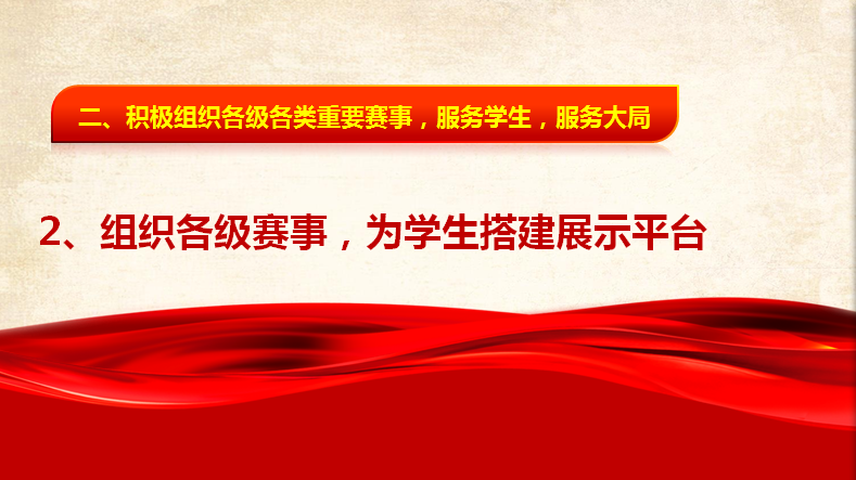 二、积极组织各级各类重要赛事,服务学生,服务大局