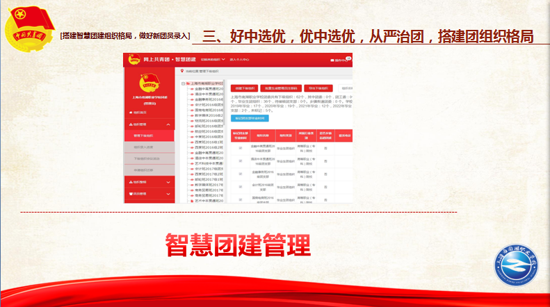 2、搭建智慧团建组织格局,做好新团员录入,老团员转出各项工作