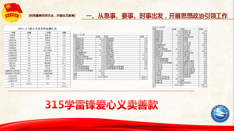 每年的3月初,我校在全校范围内开展爱心义卖活动,2017至2019年分别募得善款13000、9944、14093元,交由学校工会与教工募集的善款一同支援外省市希望小学。