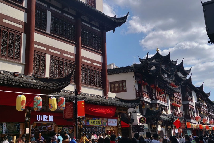 11. 《古镇秋景》一轮明月悄然升起,熙熙攘攘的人群在古镇的小巷子里走动着,小巷两旁的古玩店、食品店和景观灯使游人们驻足,古镇重新焕发起了勃勃生机。有一家三口抱着小孩儿的大人,有结伴同行的老人们,有手拉手蹦蹦跳跳的少年,还有共同出游的一大家子,场面其乐融融。看到这热闹的场面,我不禁顺着台阶走上高地,拍下留念。大上海的活力依旧!当时为了抗疫,全国人民万众一心,足不出户、大街小巷冷冷清清。忍一忍,风雨过后,中国仍是那番繁华盛景!