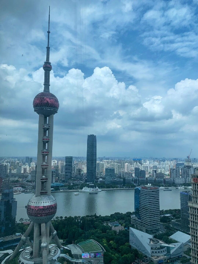 44. 《俯瞰上海》“东方明珠入云霄,雄伟壮观领新潮。登塔俯视高楼矮,远眺浦江生自豪” 东方明珠广播电视塔位于上海市浦东新区陆家嘴,国家5A级旅游景区,其最佳观景点在观光层,可360度欣赏上海美景,塔上从上到下一共由大小11个球体串联,塔内还有空中旋转餐厅、发展陈列馆、科幻城等。它是上海十大新景观之一,以及标志性文化景观之一。