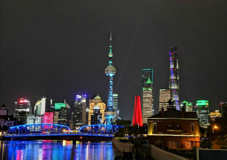 41《浦江光影秀》今年的中秋节和国庆节很特殊因为同在10月1日,由于今年疫情原因,我在封闭式的家里也呆腻了,但现在国内虽然控制的很好,但也还是以防境外输入病例,对于很想要出去玩的我也趁着这个双节日,出去玩了一把,不过人多的地方还是戴好口罩,但为了安全还是做好安全措施,虽然只能在周边玩,不能出上海,但是浦江光影秀也是很好看的每逢重大节假日,外滩灯光秀将定期上线,开始时间是9月30日至10月7日 18:30至22:30,地点在黄浦江两岸,时长每场时长约5分钟,一天9场观灯的时候,也应佩戴口罩,保持与他人的间隔距离,避开人流高峰时间和人流多的区域,听从现场指挥。这个是在晚上7:30拍的,那时通过两岸楼宇灯光、激光灯、光束灯与音乐的融合,展示了上海开放、包容、创新的城市形象,表达上海人民祝福全国人民万家团圆、祖国繁荣昌盛的美好祝愿。