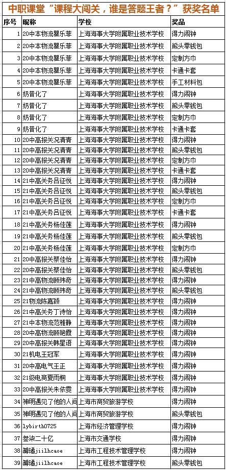 获奖名单公布【中职课堂】“课程大闯关,谁是答题王者?”活动