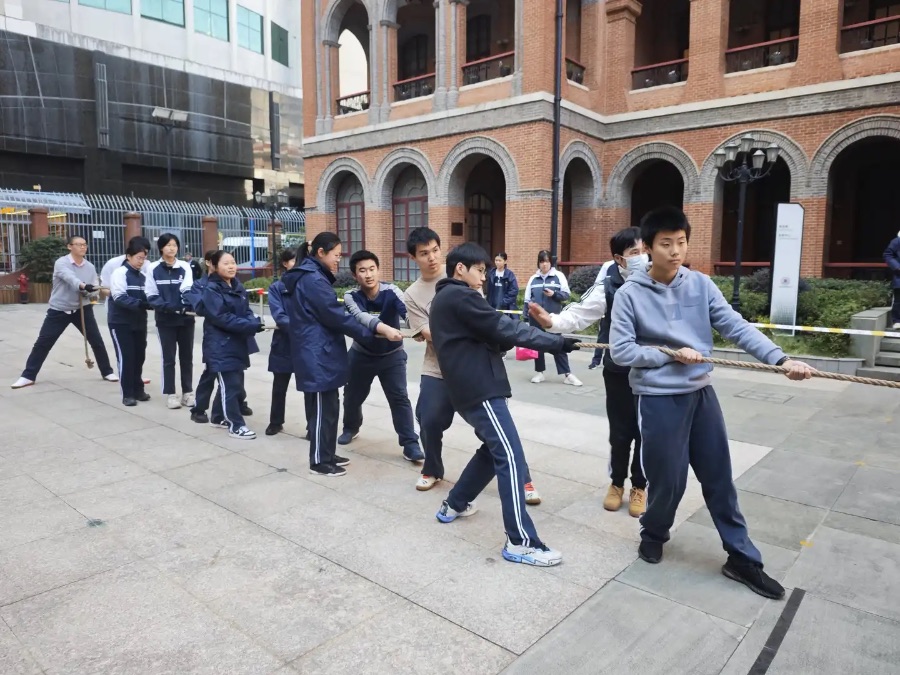 哨声响起的瞬间,紧绷的麻绳传来滚烫的力量。我们班所有人都攥紧绳子,身体后倾,喊着整齐的口号,脚下的泥土被踩出深深的印记。