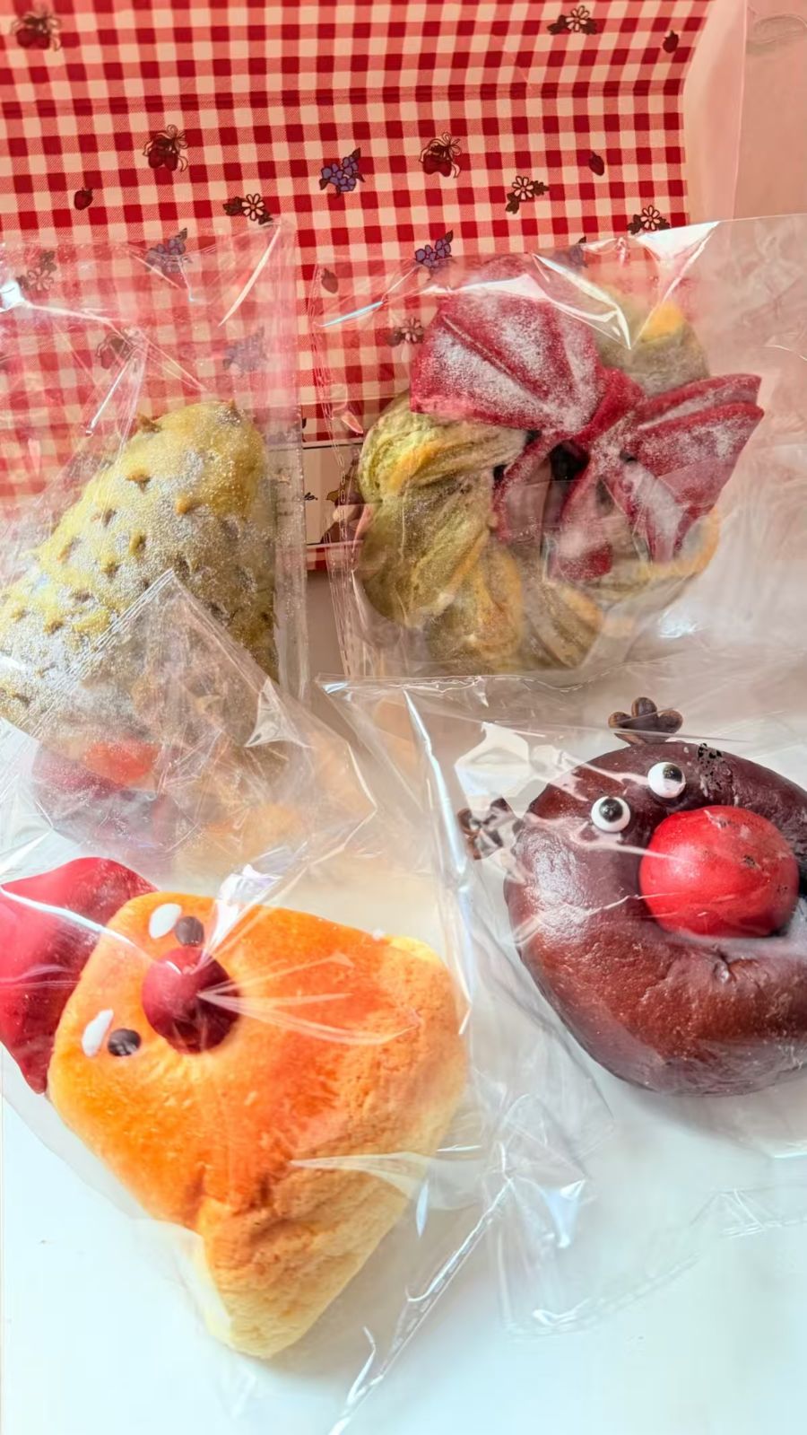 圣诞限定的可爱面包也太治愈了!红格纹背景带着满满的节日氛围感,四款造型面包各有萌点。抹茶面团揉成的圣诞树面包撒着细腻糖粉,红色糖饰做成的蝴蝶结俏皮又喜庆,松软的质地看着就忍不住想捏一捏。巧克力味的小鹿贝果更是萌化人心,圆滚滚的身形配着亮晶晶的糖珠眼睛,红果做的鼻子鲜艳又立体,圣诞小鹿的模样活灵活现。还有橘子造型的面包,橙黄的面包体捏出圆润的轮廓,红果蒂和糖珠点缀的细节超用心,把圣诞的甜蜜与可爱揉进每一款面包里,光是看着就幸福感满溢,圣诞的仪式感被这些碳水小可爱狠狠拿捏啦~