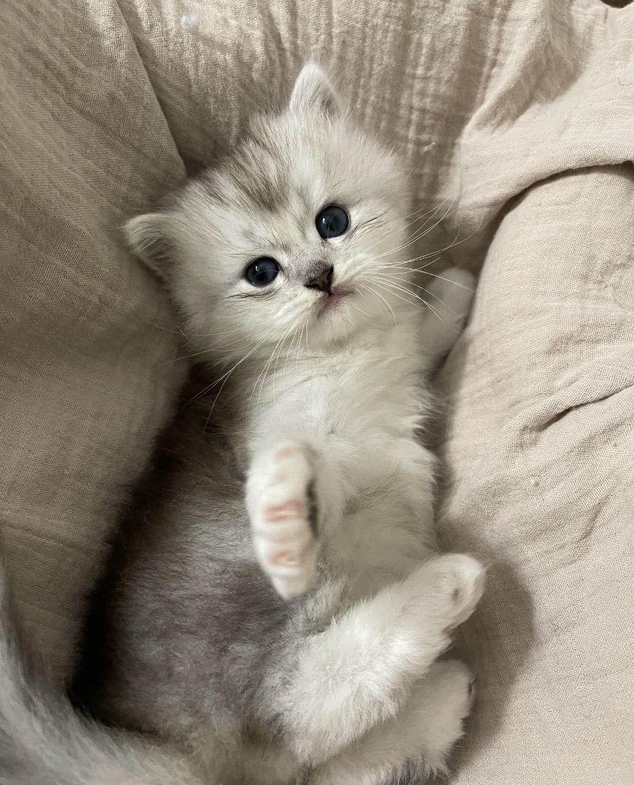 小区里的银渐层猫咪,像一团会走动的月光。一身渐变的银灰色短毛,毛尖泛着淡淡的雾白,在阳光下透着柔和的光泽,摸上去细密又顺滑,干净得一尘不染。它身形圆润,四肢纤细,一双又大又圆的眼睛像浸在水里的琉璃,浅绿或淡蓝,温柔又透亮。