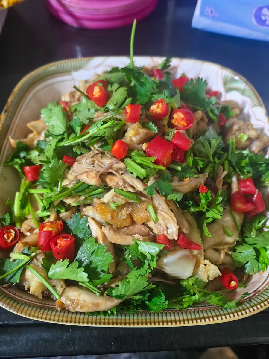 手撕鸡是粤菜中极具代表性的凉拌美食,以皮脆肉嫩、咸香入味著称。不同于机器切割,手工手撕能更好保留鸡肉的汁水与鲜嫩,风味层次更丰富。