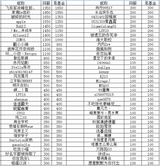 感谢以上这些朋友对我们这次版块联合活动的支持,如果你参加了活动,名单上没有你或者网薪少给了,都可以发私消给活动小天使哦。恭喜前三名的易友得到了我们的易班熊奖励,稍后活动小天使会给大家发私消通知的,请大家关注自己的系统消息哦!