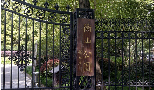 衡山公园位于广元路2号,面积10855平方米。1925年8月,法租界公董局在此辟建公园。原址北部有一条旧河道地势低洼施工中用疏浚徐家汇河的河泥5000吨充作填土然后种植树木。1963年后公园以展出各种盆景为特色。1965年起因建设工程需要停止对外开放。1991年11月在园中建沈钧儒塑 像。园内绿化基本保持原有布局,三株百年香樟,两株在大门西面,一株在园东侧树丛中。公园中央有千余平方米的大草坪,高大的乔木与大块草坪、灌木、花卉组成各色景观。