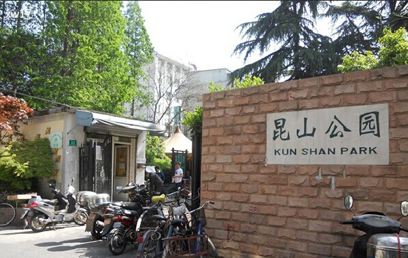 昆山公园位于昆山路13号,坐东朝西,西临百官街,北届昆山路。1949年底修复时种植和移植树木636株。1982年建造亭廊、棚架、地坪、围栏,园门迎面载雪松、棕榈、红叶等,小花坛中月季花、茶花、黄馨、迎春争相斗艳。