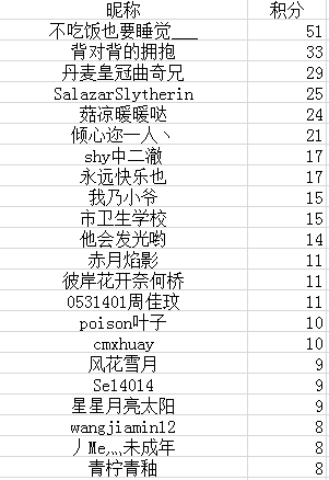 参与when I was young 之【看图猜城市】活动的积分排名已经新鲜出炉了哦!因为这次活动有排名重叠的情况,因此我们会额外奖励两只易班熊给获奖的小伙伴。快来看看你是否在获奖名单上吧~