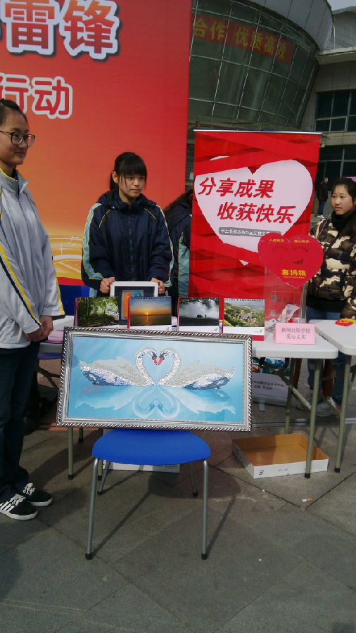 有印后畅想社学生制作的古线装本子,有老师拍摄学生装订的2015年台历,有粉雕社雕刻的年年有“鱼”,有巧手社纯手工制作的代表着永恒、纯洁的天鹅……每一件物品都有着不同的纪念意义,每一件物品的卖出都是一份爱心的奉献,每一件物品的成功交易都是一份快乐的传递。